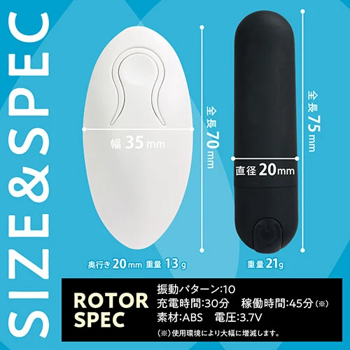 触り心地を追求した滑らかなマット素材のローターはわずか20mmの直径に全長75mmのどこにでも忍ばせやすい超小型サイズ。しかも静音設計だからよりスリリングなプレイが楽しめます。